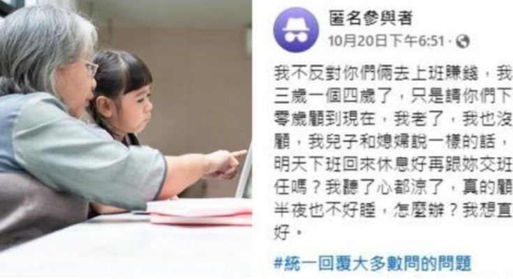 兒子媳婦雙薪,把2娃丟給我顧,現在都3、4歲了,我老了也累了…要他們請保姆,但他們怕虐嬰什麼的,媳婦竟說:「顧孫不是婆婆的責任嗎?」我想離開這個家了 extDrive快訊廣告 退休生活百百種,有的人喜歡種花種草、弄個開心農場,也有的人到處遊山玩水,享受悠閒假期,當然,也有長輩含飴弄孫、甘願替兒女帶娃。 NativeDrive原生廣告