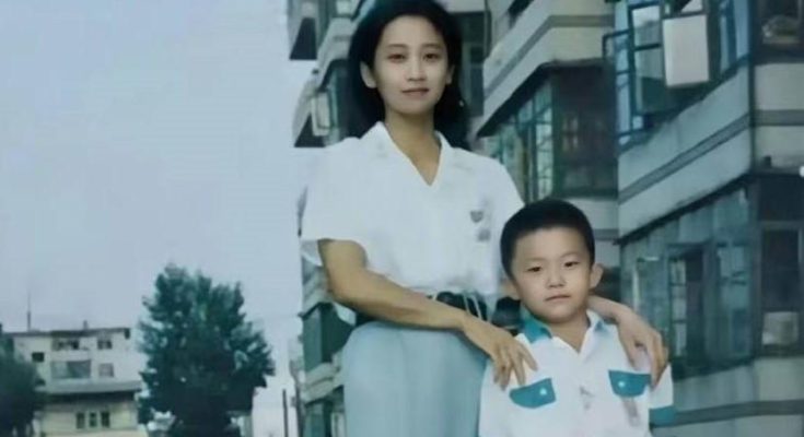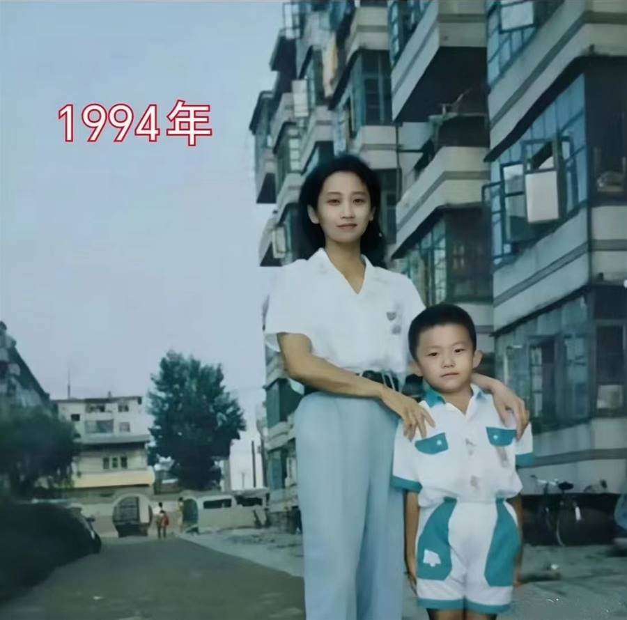 照片拍攝于1994年。當時的小男孩身穿白色短袖校服,站在母親的身旁,神情嚴肅而認真,身體站得筆直。盡管他年紀尚小,但從照片中可以看出,他已經是母親的小小男子漢了。男孩的母親看起來五官端莊,面容清秀。她的打扮簡潔樸素,卻自有一種沉穩優雅的氣質。照片中,母親站在小男孩的身旁,雙手輕輕放在兒子的肩膀上,眼神中滿是對孩子的愛與期待。