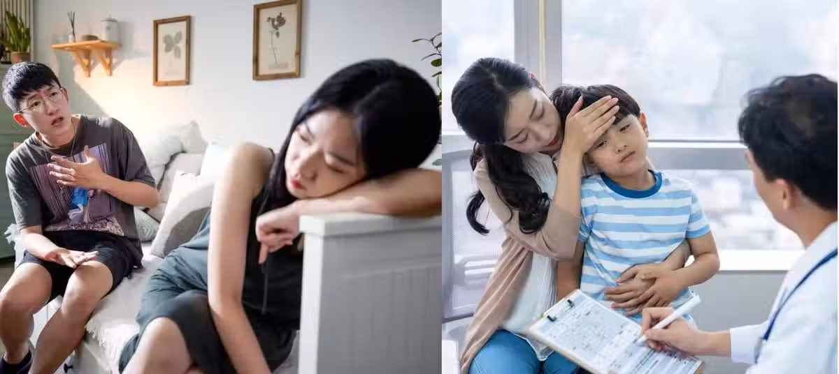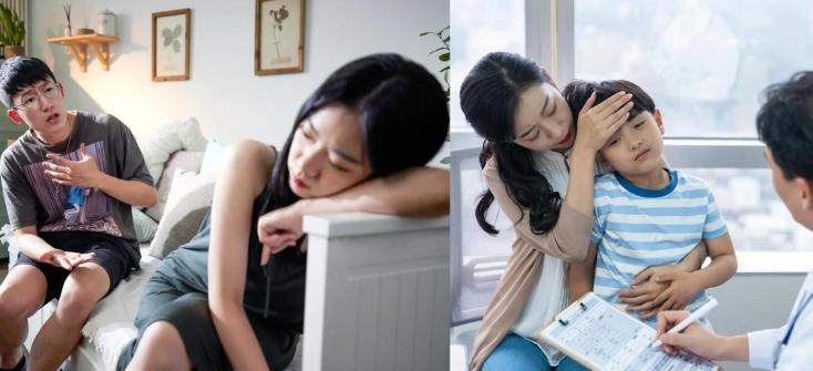 看著孩子退燒之後逐漸睡著了,她才有空休息一下,因為實在太累了,她也不知不覺躺在沙發上睡著了。