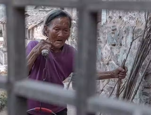 我們兩家就商量好了,每家給奶奶挑五天的水,拿五天的柴火。奶奶做飯都是蹲在黑咕隆咚的鍋屋裡,燒柴火做飯。