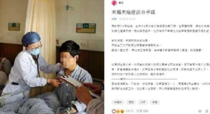 有一位女網友在《Dcard》表示,本來預計明年1月要結婚,結果6月時檢查出未婚夫得到癌症,讓她不知道該不該讓這段感情繼續下去。