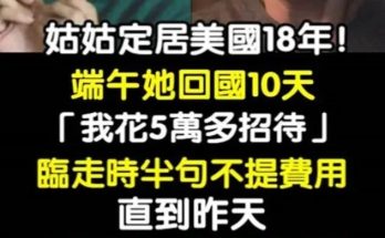 姑姑定居美國18年!端午她回國十天「我花五萬多招待」臨走時半句不提費用「昨天我收到一封信」淚崩 2025-08-20 姑姑定居美國18年!端午她回國十天「我花五萬多招待」臨走時半句不提費用「昨天我收到一封信」淚崩 Read More